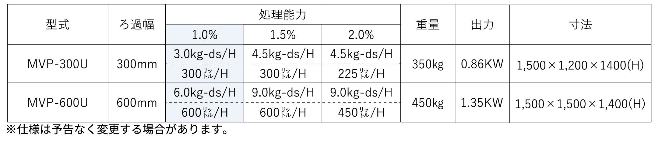 少量汚泥処理クラスで最も高機能でローコストMVP-Uシリーズの特徴